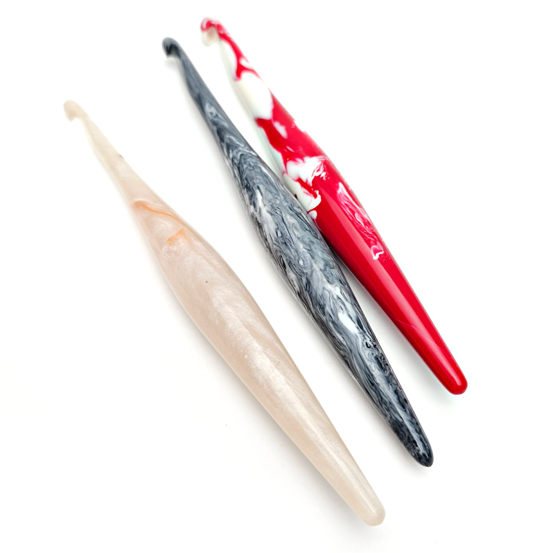Many of our crochet hooks are handmade. As crafters know, this means each piece is unique! Every swirl will be nuanced, each artisan will have their preferred technique, and each piece of wood will carry its growth story through its woodgrain.